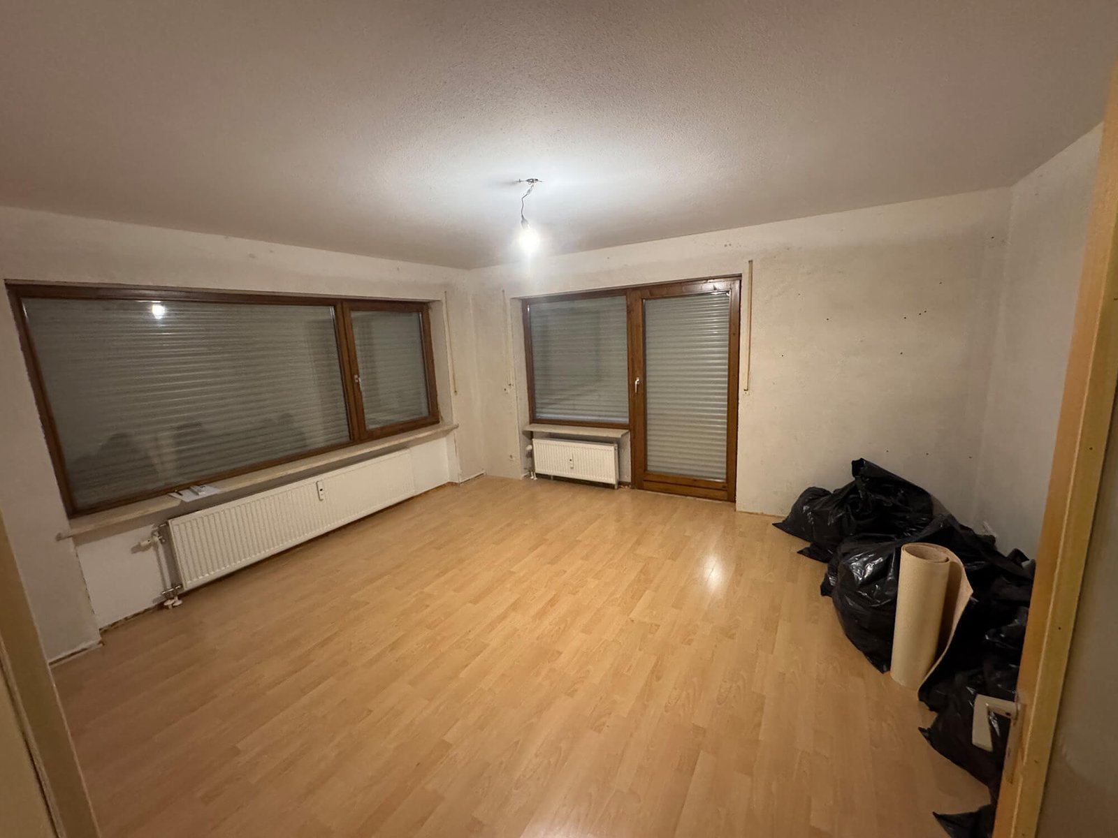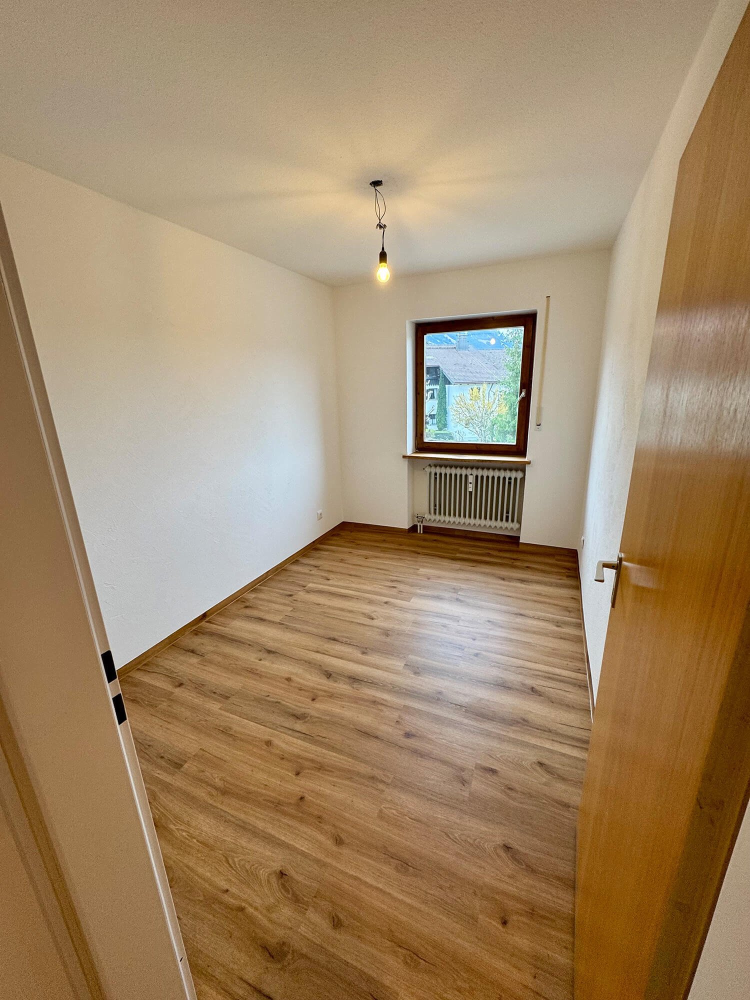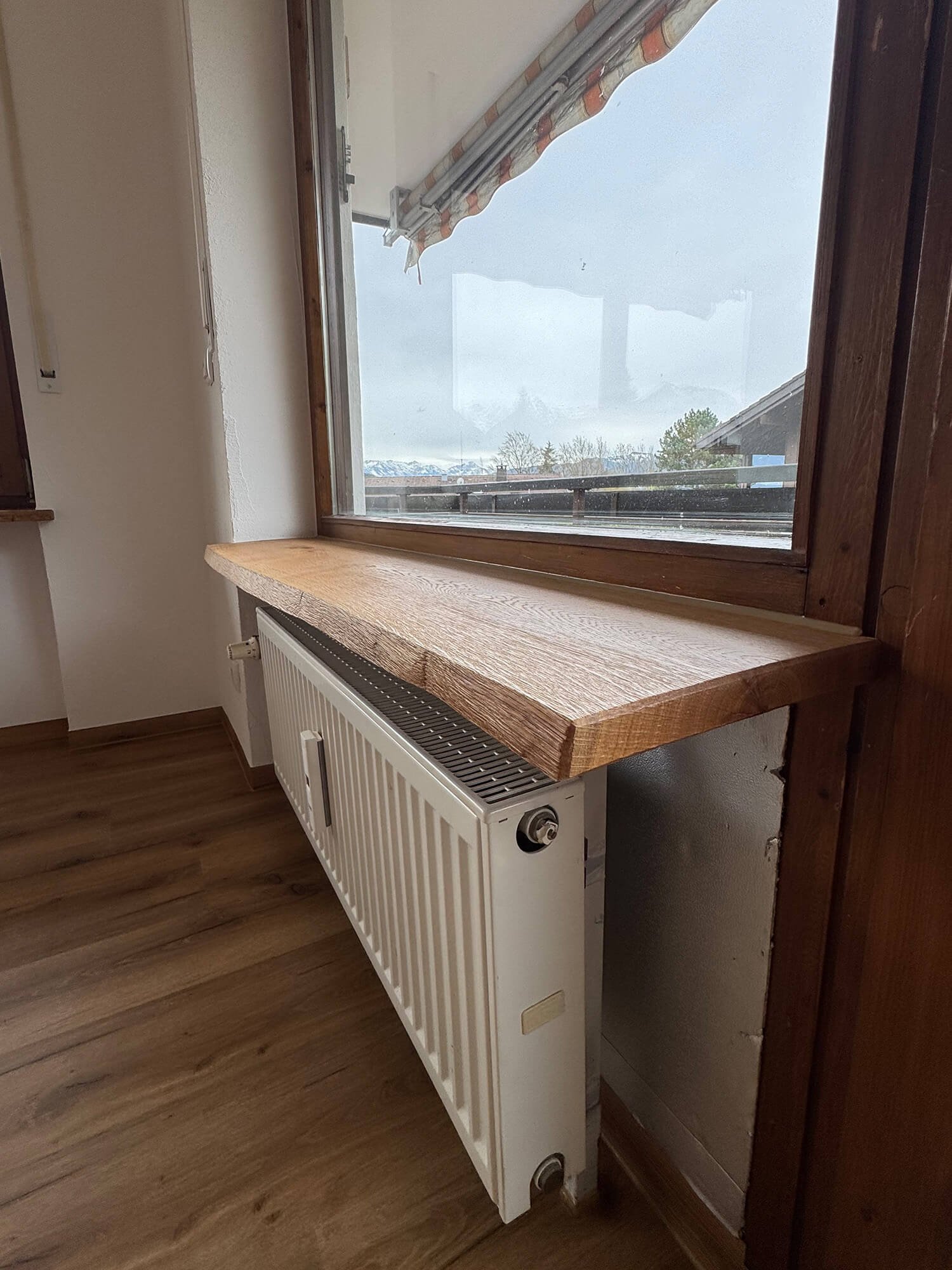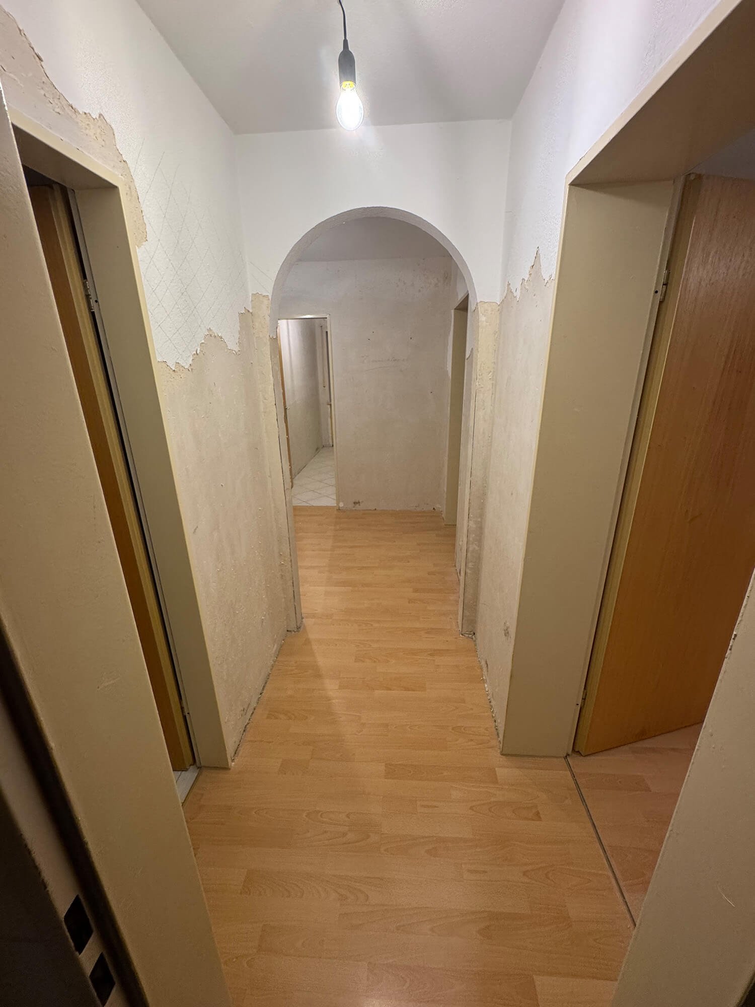 Bei diesem Bauvorhaben übernahmen wir eine umfassende Wohnraumsanierung mit besonderem Fokus auf Koordination und handwerkliche Umsetzung. Neben der vollständigen Organisation der Fremdgewerke – vom Elektriker bis zum Küchenbauer – wurden die Wände und Decken in traditioneller Kellenschlagtechnik verputzt und gestrichen. Für eine moderne Lichtlösung erhielten Küche und Flur eine abgehängte Decke mit Einbaustrahlern. Auch beim Boden wurde viel Wert auf Funktion und Ausgleich unterschiedlicher Raumhöhen gelegt. Als Blickfang wurde die Küchenfläche in klassischem Fischgrätmuster gefliest – ergänzt durch unbesäumte Eichen-Fensterbänke, die natürliche Akzente setzen.